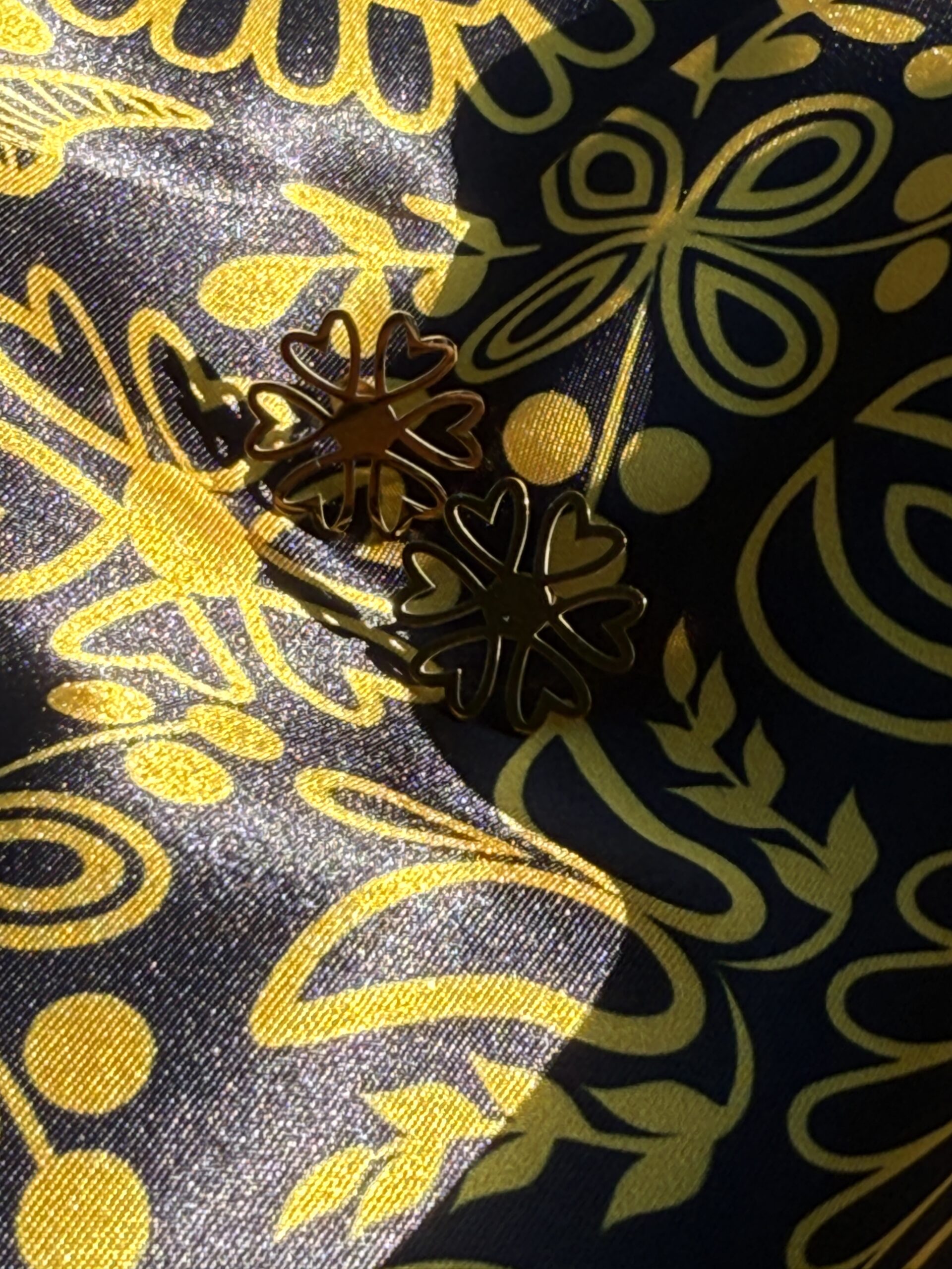 Šatka, ktorá rozpráva príbeh a puzetové pozlátené náušnice.
